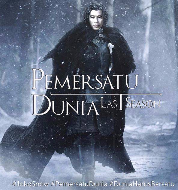 Dengan adanya kekhawatiran ancaman Evil Winter tersebut, … akhirnya mereka sadar: tidak penting siapa yang duduki di “Iron Throne”. yang penting adalah kekuatan Bersama untuk mengalahkan Evil Winter agar bencana global tidak terjadi. Agar dunia tidak berubah menjadi tanah tandus yang porak poranda yang menyengsarakan kita semua," ujar Jokowi dilansirbrilio.net dari liputan6.com.