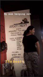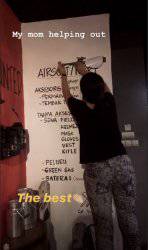 "My mom helping out (ibuku membantu)," tulisnya di unggahan story lainnya.
