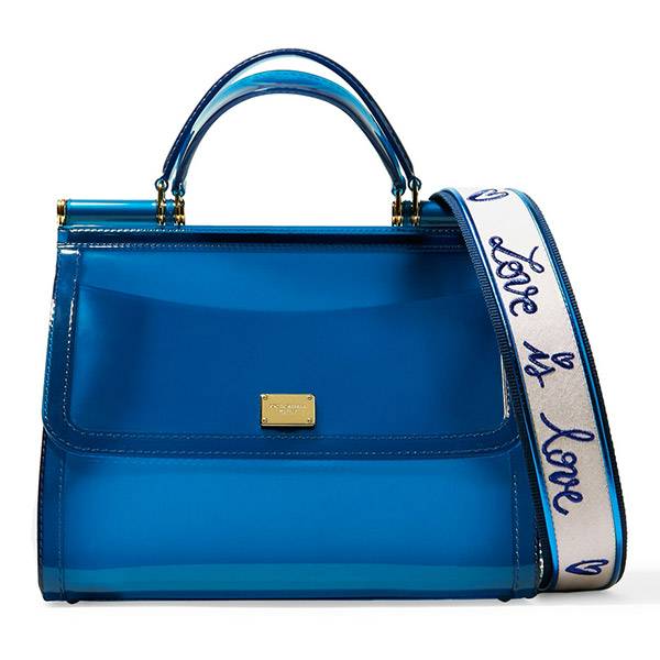 Tas dari label ternama ini dilansir dengan material PVC atau plastik dengan warna menyala yaitu biru. Modelnya yang struktural dan lady like, sangat cocok dipadukan bersama gaun feminin kamu saat pergi keafternoon soiree atau bahkan bisa dipasangkan bersama blazer dan celana palazo untuk ke kantor. Yang buat Cosmo jatuh cinta dengan item ini adalah talinya yang dihias oleh tulisan love is love sekaligus motif hati. Keren! (Dolce&Gabbana -Net-a-Porter, price upon request)