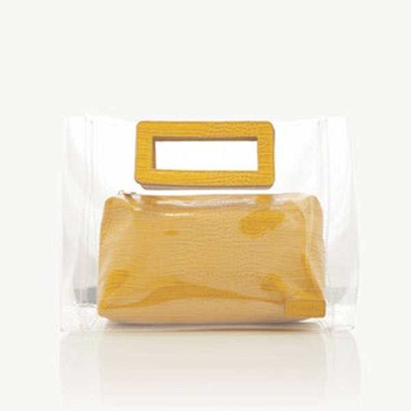 Perpaduan bahan plastik atau PVC dengan kulit bermotif eksotis buat tas ini tampil stylish. Tote bag dengan ekstra pouch ini dibuat dengan ukuran medium sehingga mampu memuat kebutuhan kamu sehari-hari. Yang Cosmo suka dari tas ini, semua barang yang dibawa bisa dengan mudah kamu cari dan temukan berkat material transparan. (Pomelo, Rp429.000,-.)