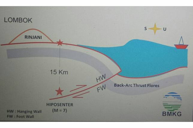Badan Meteorologi, Klimatologi, dan Geofisika (BMKG) menyatakan, gempa yang terjadi pukul 01.44 WIB itu disebabkan oleh Sesar Naik Flores. Sesar adalah patahan yang terjadi pada lapisan batuan bumi yang ditimbulkan karena adanya pergesekan dari lempengan bumi. Indonesia sendiri terletak di antara tiga lempengan bumi yakni; Lempeng Eurasia, Lempeng Indo-Australia dan Lempeng Samudra Pasifik.