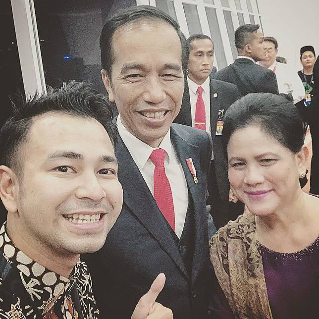 Sukses membawakan acara dengan sempurna, Raffi Ahmad berkesempatan bertemu dengan Presiden Republik Indonesia, Joko Widodo, beserta sang istri, Iriana.