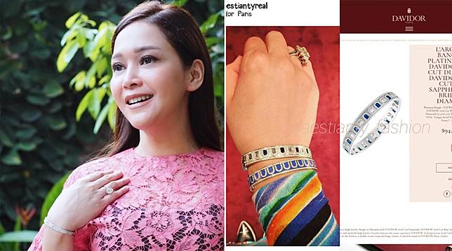 Maia Estianty juga memiliki koleksi perhiasan mewah yang bertabur berlian. Salah satunya adalah gelang keluaran dari Davidor L'arc Deco Bangle with Diamond Cut yang dibanderol USD 94,500 atau setara Rp 1,4 miliar.