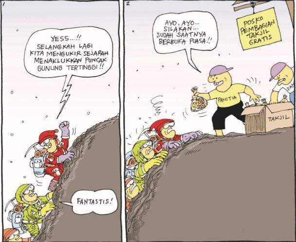 1. Wah, bagi-bagi takjil di atas gunung tuh.
