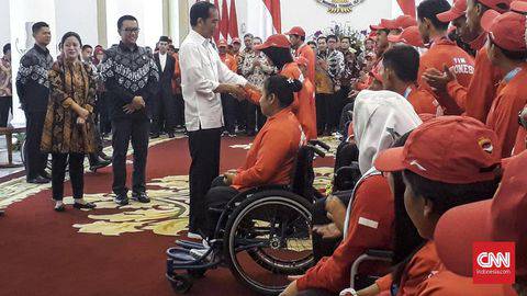 Jokowi pun sempat melontarkan gurauan soal raihan medali atlet Asian Para Games 2018 yang menyedot lebih banyak Anggaran Pendapatan dan Belanja Negara (APBN) untuk bonus.