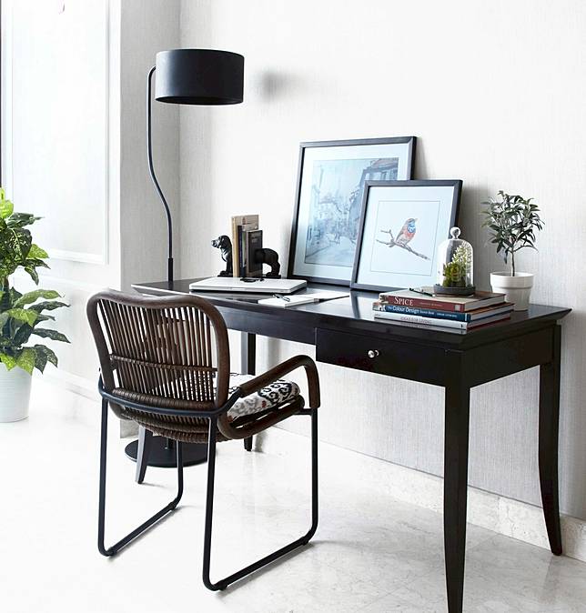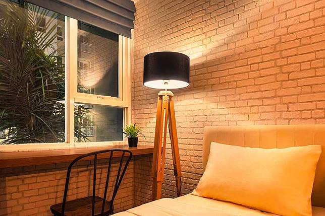 Ruang kerja atau ruang baca mungkin identik dengan lampu meja. Namun, bukan berarti Anda jadi kehilangan kesempatan untuk berkreasi. Anda bisa menggunakan standing lamp dengan desain yang Anda sukai untuk mendekorasi dan menyinari sudut ruang kerja Anda seperti contoh di atas.
