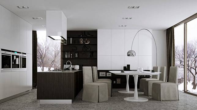 Sama seperti ruangan lain di dalam rumah, ruang makan juga memerlukan pencahayaan yang mendukung tampilan estetikanya. Standing lamp berbahan stainless dengan desain modern ini cocok untuk diterapkan di ruang makan bergaya kontemporer milik Anda. Selain membuat acara makan semakin menyenangkan, desainnya juga akan mendongkrak nilai estetika rumah Anda.