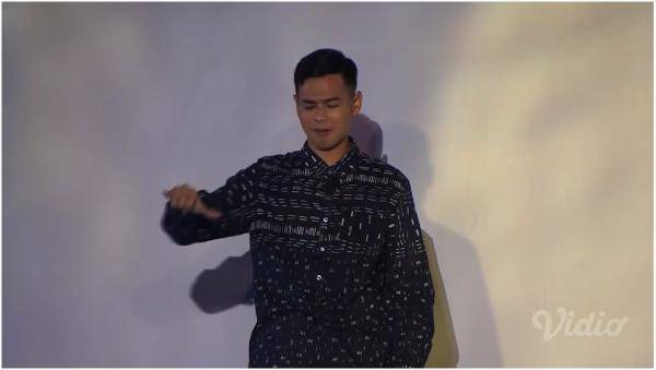 disabilitas Surya Sahetapi berada di atas panggung. (Sumber: vidio)