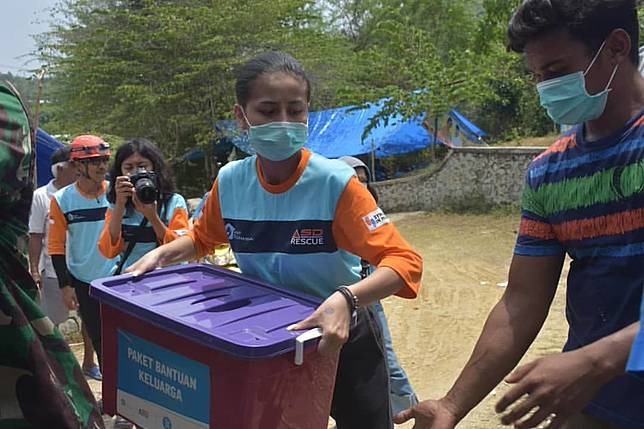 6. Jika biasanya Karin menghabiskan waktu dengan berpesta, kini ia tidak segan mengangkat barang membantu relawan lainnya