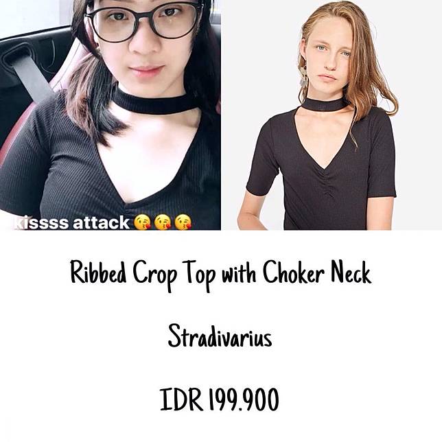 4. Sering tampil dengan busana berwarna gelap kali ini mengenakanRobbed Crop Top with Choker Neck yang dibanderol dengan harga 199 ribu.