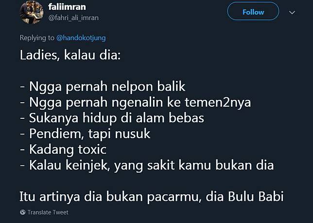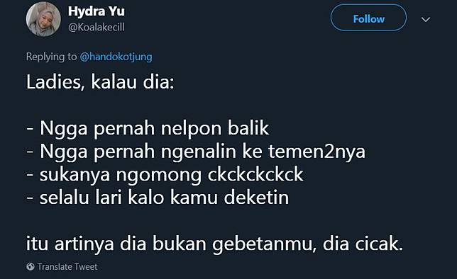 Diawali dari cuitan akun @handokotjung, lalu postingan yang sudah di-retweet sebanyak lebih dari 4.000 kali tersebut mulai banyak diikuti warganet memosting cuitan serupa. Cuitan 'bukan pacarmu' ini ramai dibahas karena lucunya bisa bikin senyum-senyum sendiri. Awalnya serius, namun ending dari tweet-nya bikin ngakak.