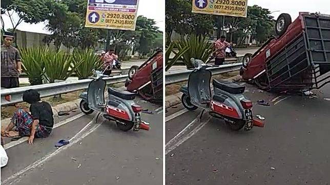 Mobil bak yang mengangkut belasan santri dari Pondok Pesantren Miftahul Huda, Semanan, Jakarta Barat terguling setelah melaju dengan kecepatan tinggi.