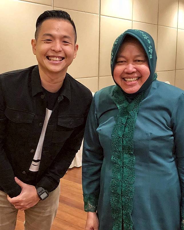 Komedian Ernest Prakasa berkesempatan bertemu dengan Walikota Surabaya, Tri Rismaharini pada Rabu (14/11/2018).