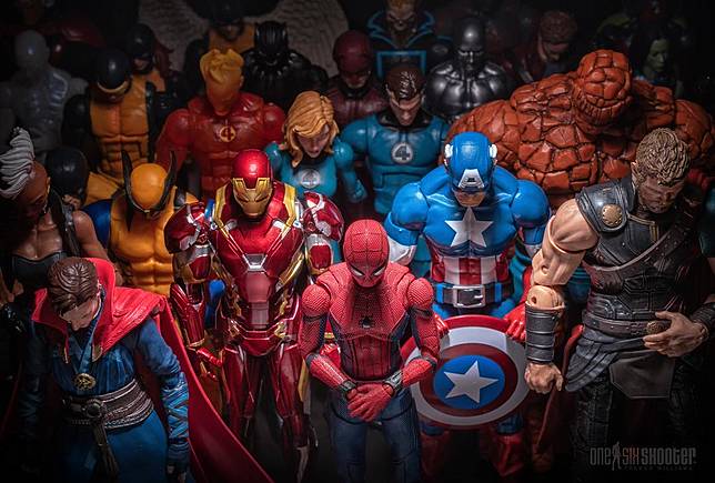 Berikutnya ada kumpulan superhero yang lagi menundukan badan seolah-olah sedang memberikan penghormatan. Tentu aja penghormatan ini diberikan untuk sosok yang udah menciptakan mereka yakni Stan Lee.