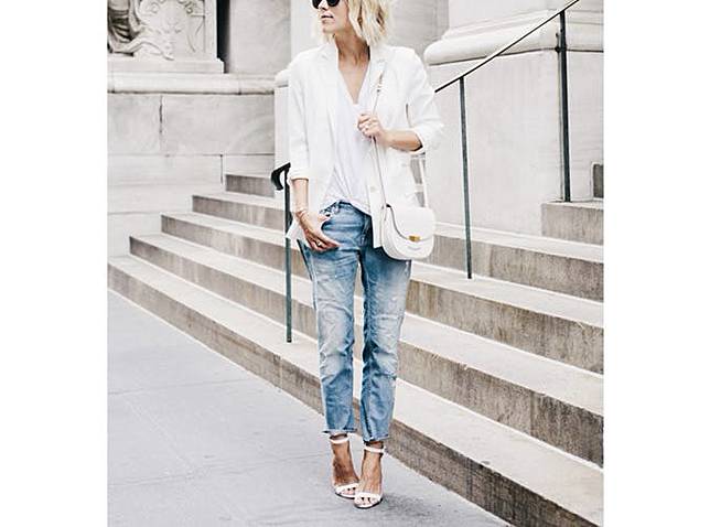 Untuk menambah kesan stylish kamu bisa menambahkan blezer dengan warna lain atau putih krem juga keren, Traveler.